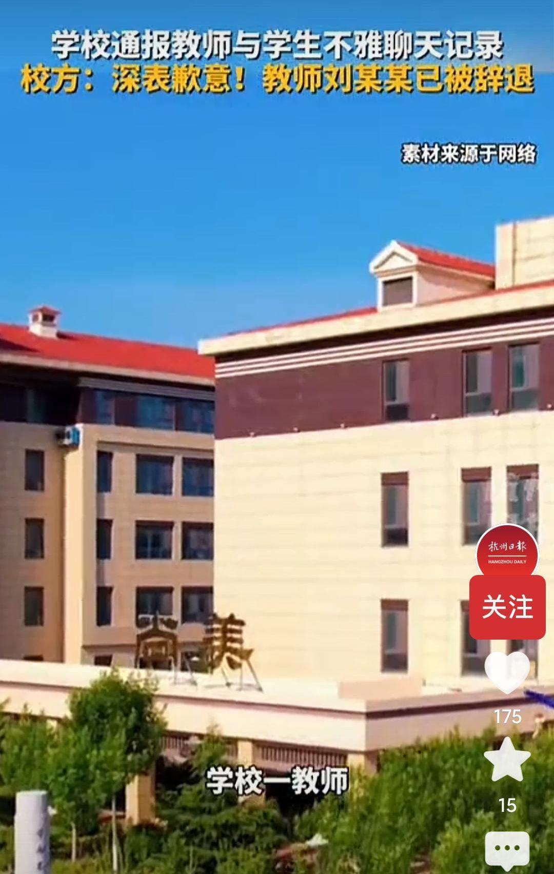 据说这聊天记录还是被女学生的家长发现了,然后他们把这事情给捅到了学校里,学校连夜做出了处理。