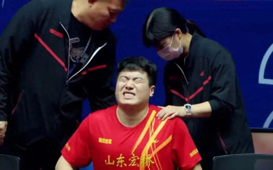 7月份乒超联赛上,山东鲁能和魏桥的对决中,梁靖崑对阵袁励岑,首局1-4落后时候大胖举手示意表情痛苦地弯下腰,队医迅速进场检查其腰部与背部区域,梁靖崑数次摇头,最终无奈挥手示意无法继续比赛,在仅打5球后,这位国乒主力因伤退赛,山东鲁能因此自动赢得该盘。